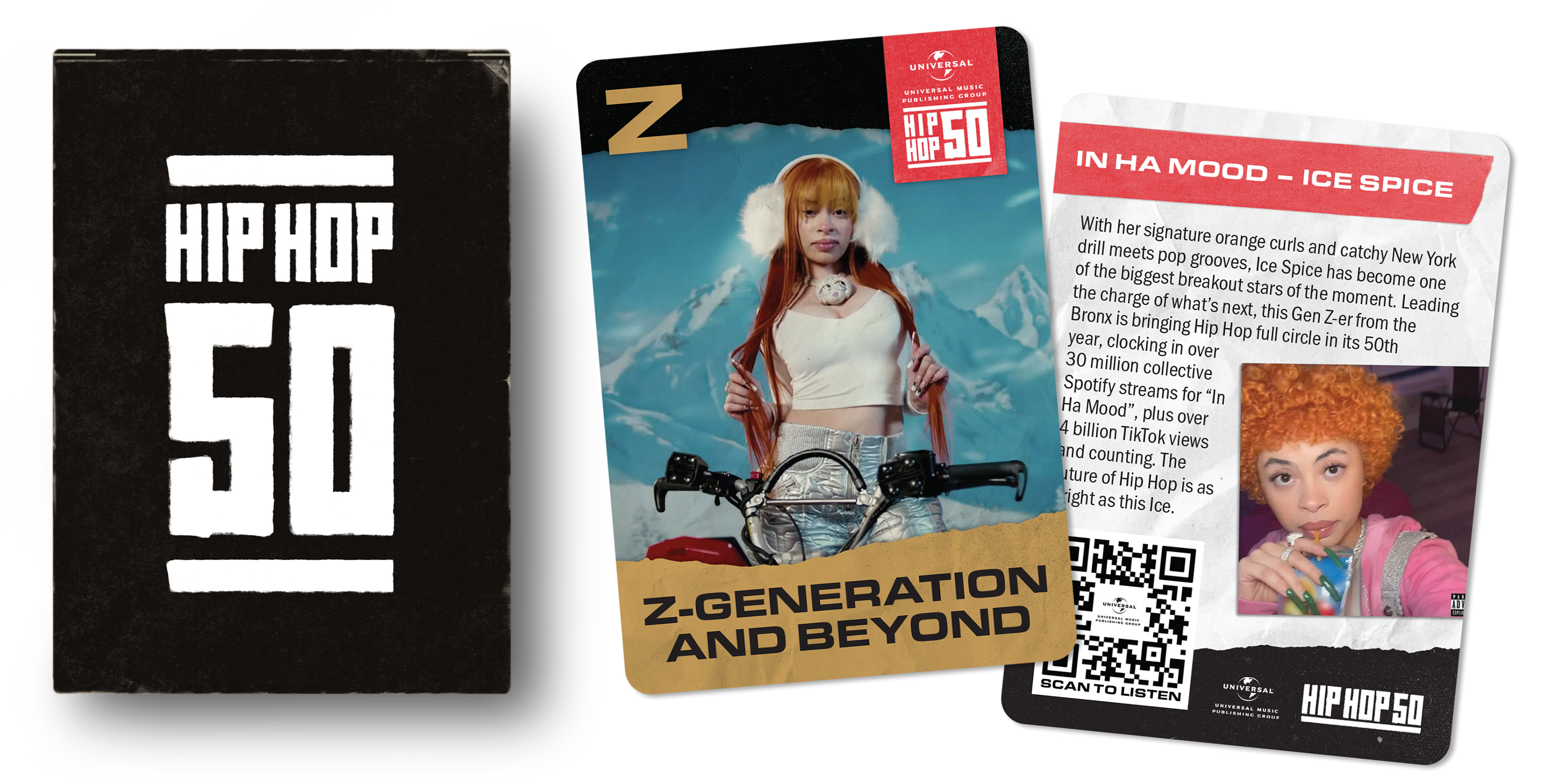 Branding and style guide project for Universal Music Publishing Group celebrating 50 years of Hip Hop. Additional project creating internal marketing items including Hip Hop A-Z trading cards and accompanying tape cassette sleeve.